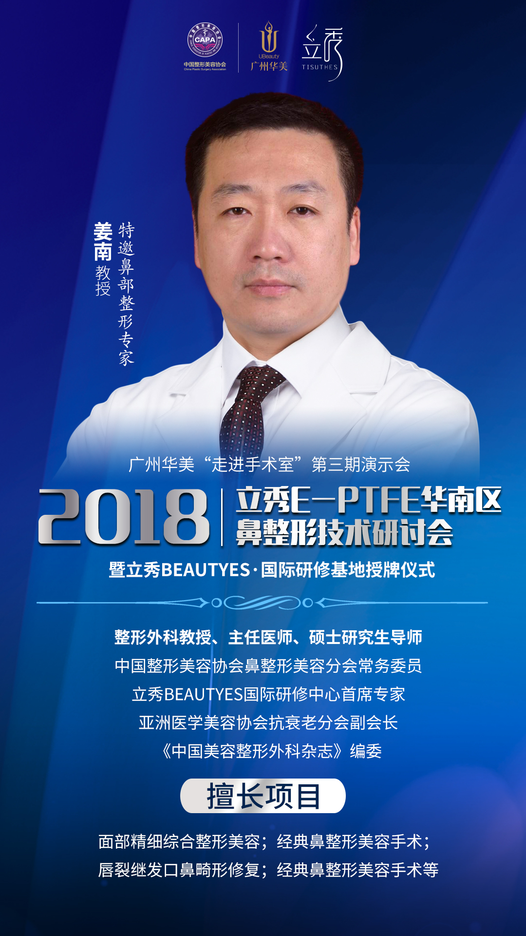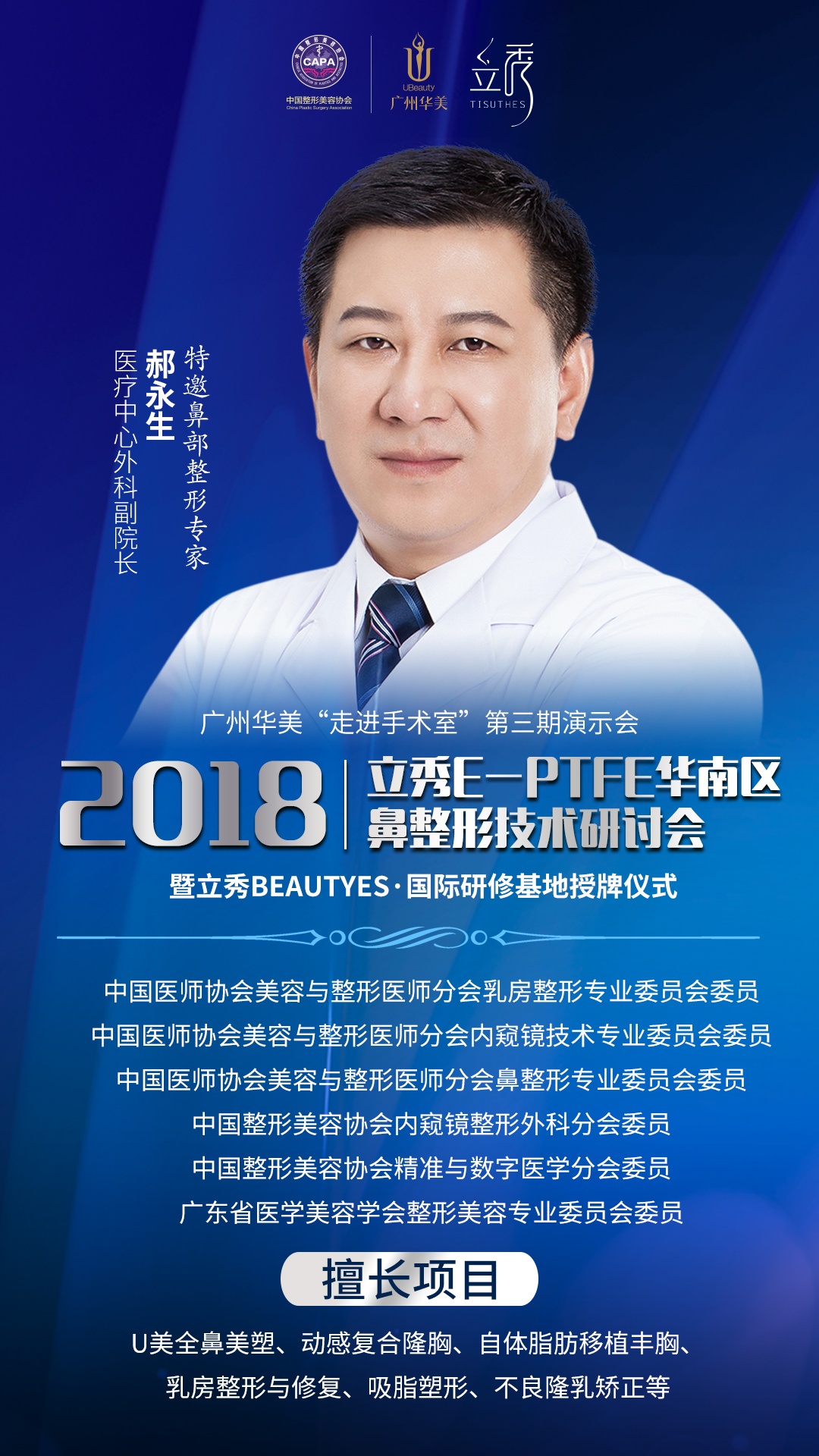 由中国整形美容协会鼻整形分会主办,广州华美医疗美容医院、立秀BEAUTYES国际研修、广州旭德国际贸易有限公司联袂举办的的高规格鼻部整形学术盛会——【广州华美“走进手术室”第三期演示会丨2018立秀e-PTFE华南区鼻整形技术研讨会暨立秀BEAUTYES.国际研修授牌仪式】将于2018年5月26日隆重召开!