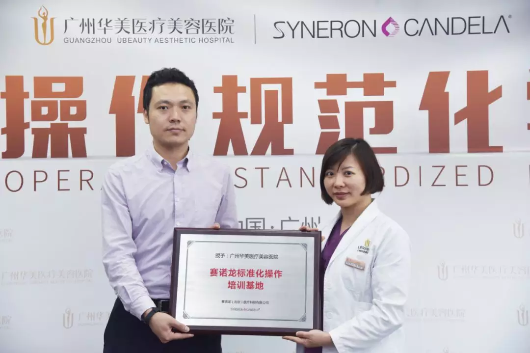 基于广州华美前沿的祛斑美肤技术、强大权威的祛斑美肤医师团、拥有极具代表性的高精尖美肤光学设备,刘建超先生代表赛诺龙医疗科技有限公司为广州华美授牌“超皮秒培训”,再次确定了广州华美在祛斑美肤技术的领军地位!