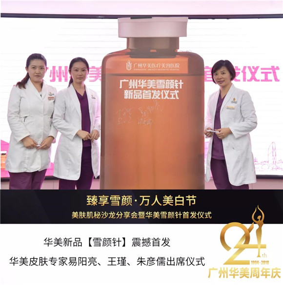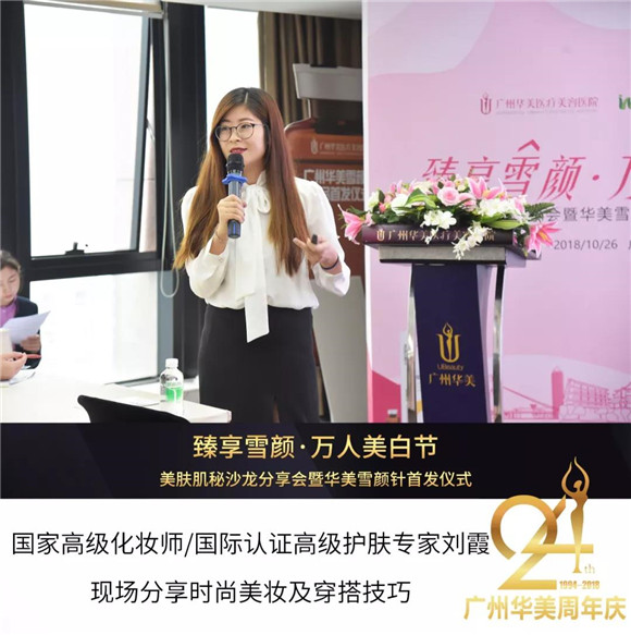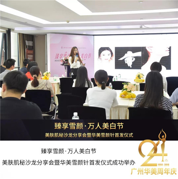 10月26日,臻享雪颜·万人美白节——美肤肌秘沙龙分享会暨华美雪颜针发布仪式成功举办!广州华美美容皮肤医师团、国际认证高级护肤医师刘霞等医师医师出席此次活动,共同见证广州华美【雪颜针】震撼发布!