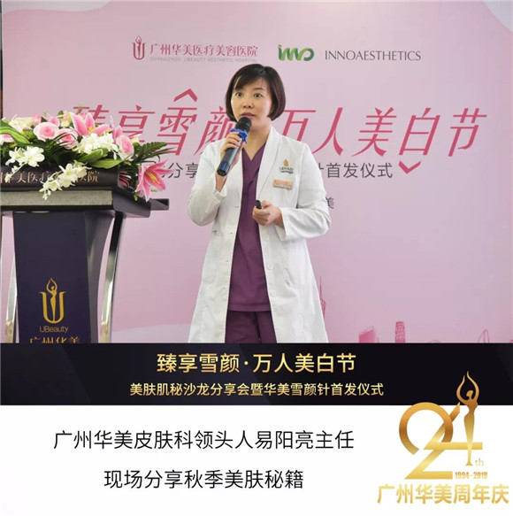 会上,广州华美皮肤科领头人易阳亮主任带来精彩的‘秋季美肤’分享,现场对【雪颜针】进行详细讲解,并为现场来宾的各种疑问进行解答。