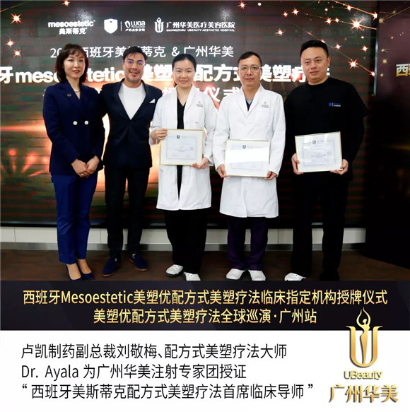会上,副总裁刘敬梅、配方式美塑疗法大师Dr.Ayala代表美斯蒂克品牌为广州华美授证——美斯蒂克配方式美塑疗法临床指定机构!并为广州华美注射美容医师团授证——西班牙美斯蒂克配方式美塑疗法首席临床导师!