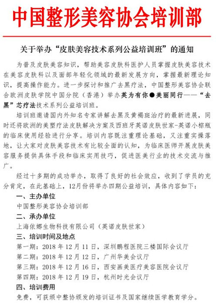 为积极响应【中国整形美容协会培训部——关于举办“皮肤美容技术系列公益培训班”】的号召,12月12日,广州华美携手英诺皮肤世家成功举办的【广州华美稚龄针新品发布会暨英诺液态提拉紧致注射实操演示】!面部年轻化医师到场见证华美抗衰美塑新品【稚龄针】发布,并与广州华美美容皮肤医师团共同探讨医疗美容技术的发展和临床应用。