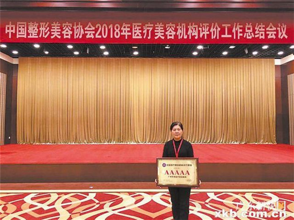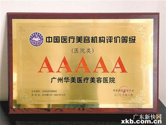 这是中国整形美容协会评出的国内第三批A等级医疗美容机构。目前广州仅有一家5A级医疗美容机构,即广州华美医疗美容医院。