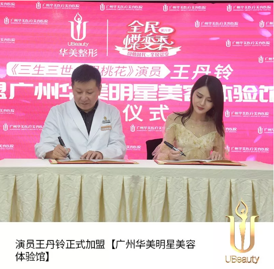 在8月17日签约仪式上,正式加盟广州华美明星美容体验官,成为全民蝶变季首位明星体验官。