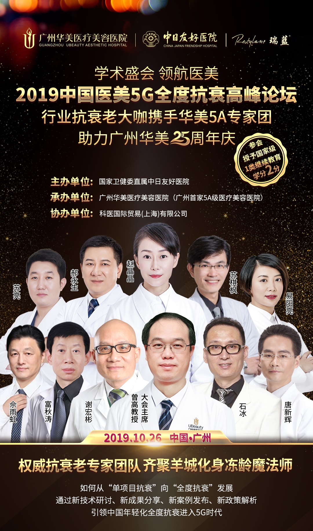 由国家卫健委直属中日友好医院与广州华美医疗美容医院联合举办的高规格学术盛会——2019中国医美5G全度抗衰高峰论坛将于10月26日在广州华美隆重举办!