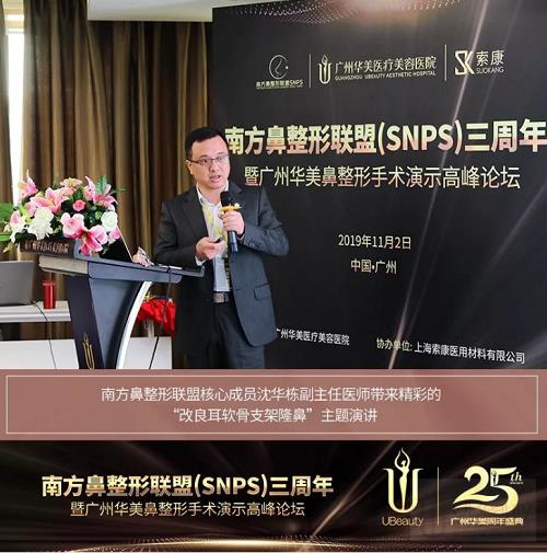 2019年11月2日,南方鼻整形联盟(SNPS)三周年暨广州华美鼻整形手术演示高峰论坛在广州华美医疗美容医院隆重举行。此次论坛由南方鼻整形联盟(SNPS)牵头主办,广州华美医疗美容医院全力承办,上海索康医用材料有限公司共同协办成立,助力广州华美25周年庆。在11月的羊城演绎了一场学术与艺术交融、破旧与立新更迭的盛会,掀起了全新视角的鼻整形美学风潮。