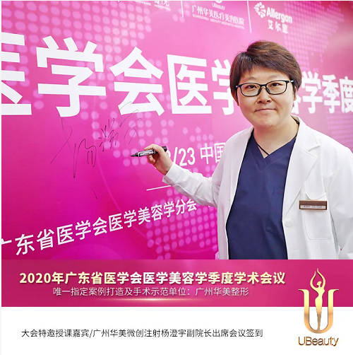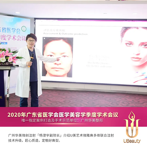广州华美凭借高水平的学术地位及精湛的整形技术,成为本次大会【唯一指定案例打造及手术示范单位】,广州华美杨澄宇副院长受邀出席学术大会担任授课专家,与业内顶尖学术力量齐聚一堂,共研医美技术新高度。而作为2020年广东省医学会医学美容学季度学术会议特邀授课专家——广州华美微创注射杨澄宇副院长与华美针功夫学科带头人赵晶晶院长领衔研发的U美艺术微雕鼻在当天首发亮相!