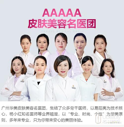 广州华美医疗美容医院作为5A级整形医院,美容皮肤科队汇聚国内外众多皮肤专家,在医美领域取得非凡成就,以易阳亮院长为主的5A级医疗美肤专家团队历经20多年的临床研究,汇聚全球技艺,其研发了"U肤秒"、“U美极”等专利技术,并提出“U美时光逆龄”美肤理念,屡获医学界各大奖项,华美美肤专家团以顾客为中心,塑造美,服务美、极致美,将专业科技与精湛技术完美融合,每年为数万名爱美人士达成美丽心愿。