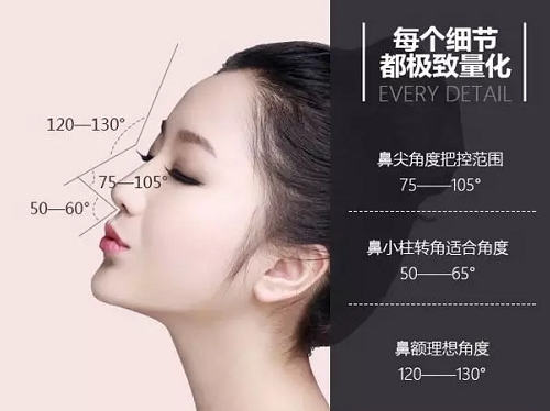 侧面看:标准的鼻额角要在120~130°左右,鼻子和上唇的角度应该在90°左右;